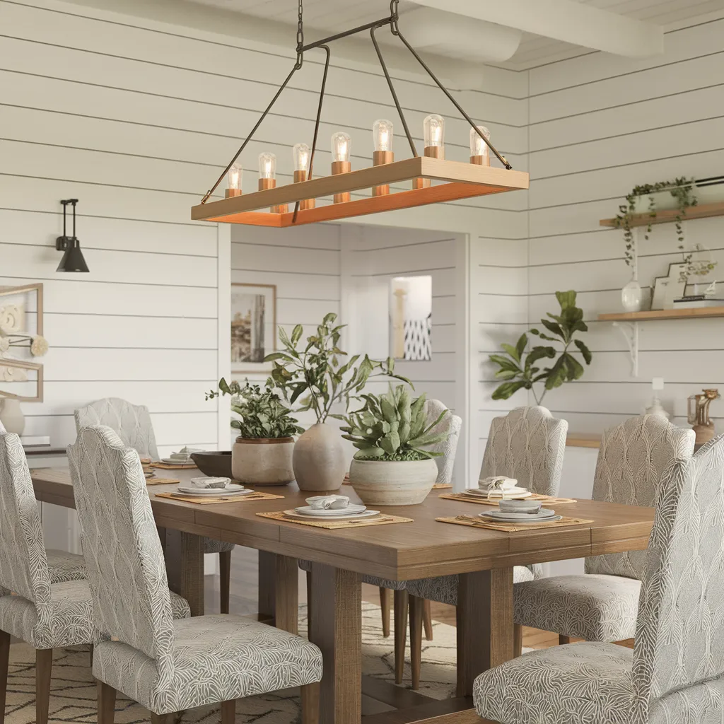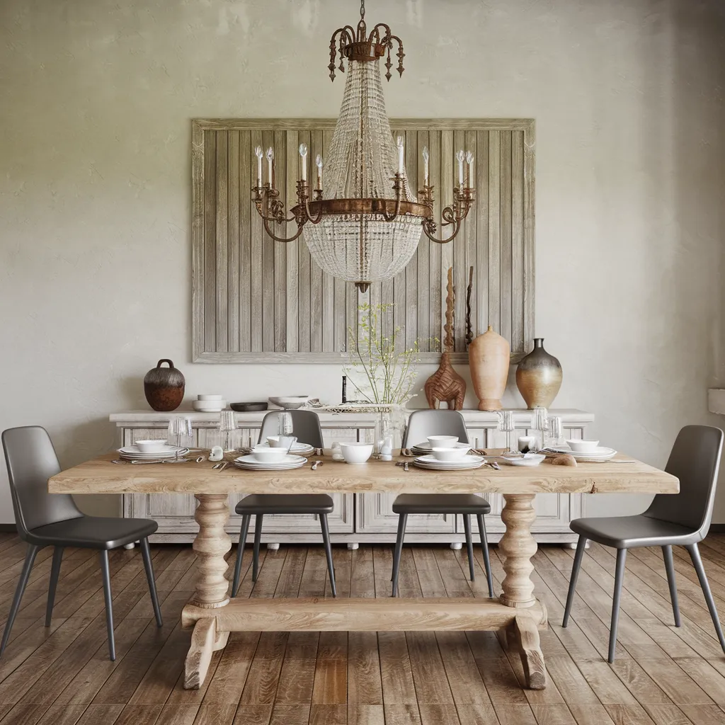 To create a modern farmhouse dining room that exudes warmth and character, start with the table as your anchor. A solid wood table with generous proportions and a finish that can withstand everyday use is the perfect foundation. From there, layer in elements that add visual interest and texture. Upholstered chairs, woven placemats, ceramic tableware, and linen runners soften the space, preventing it from feeling too polished or formal. The lighting, whether a statement chandelier or a cluster of pendants, should contribute both presence and warmth, especially during cozy evening gatherings.