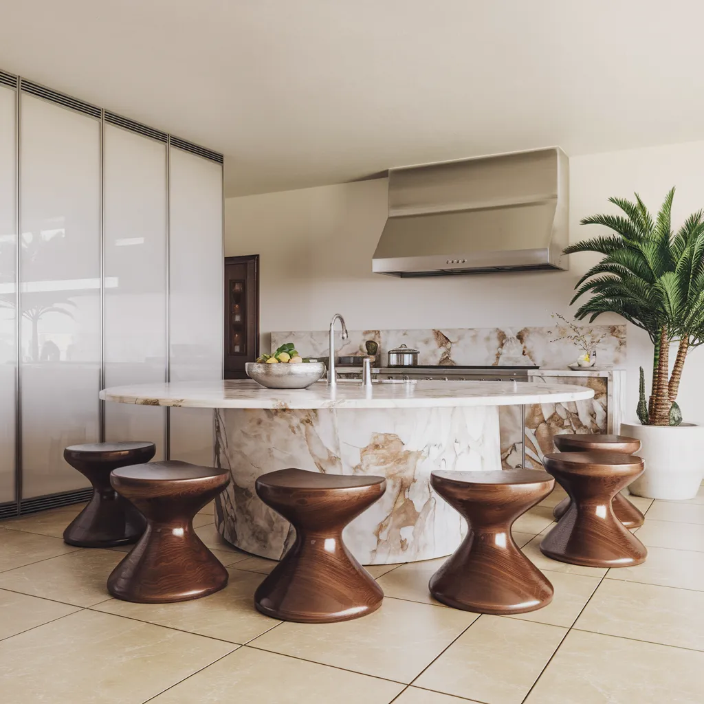 One of the greatest strengths of this trend lies in its versatility. These organic stools can seamlessly blend into a wide range of interior styles, from classic to contemporary. In more traditional kitchens, they can introduce a modern touch and soften the overall aesthetic, while in sleek, minimalist spaces, they offer a much-needed dose of warmth and character. Whether you opt for solid wood carvings, graceful curved backs, or minimalist silhouettes, these stools have the power to transform any kitchen into a welcoming, inviting space.