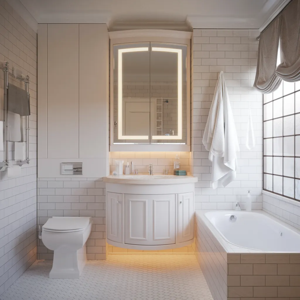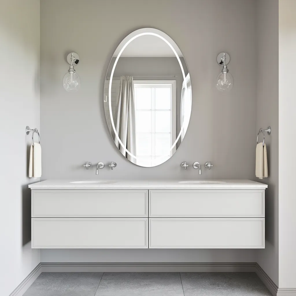 Elegance in a bathroom is often achieved through thoughtful details. One such detail is the incorporation of storage solutions within the mirror itself. Wall-mounted mirrored cabinets or recessed mirrored cabinets not only provide ample space for toiletries and essentials but also contribute to a streamlined, clutter-free environment. For those with unique layouts, corner mirrored cabinets can be a space-saving solution. Lighting is another crucial element that can elevate the ambiance of your bathroom. Backlit mirrors with integrated LED lighting offer a soft, even illumination, while non-backlit mirrors can be paired with strategically placed wall or overhead lighting to create a warm and inviting atmosphere.