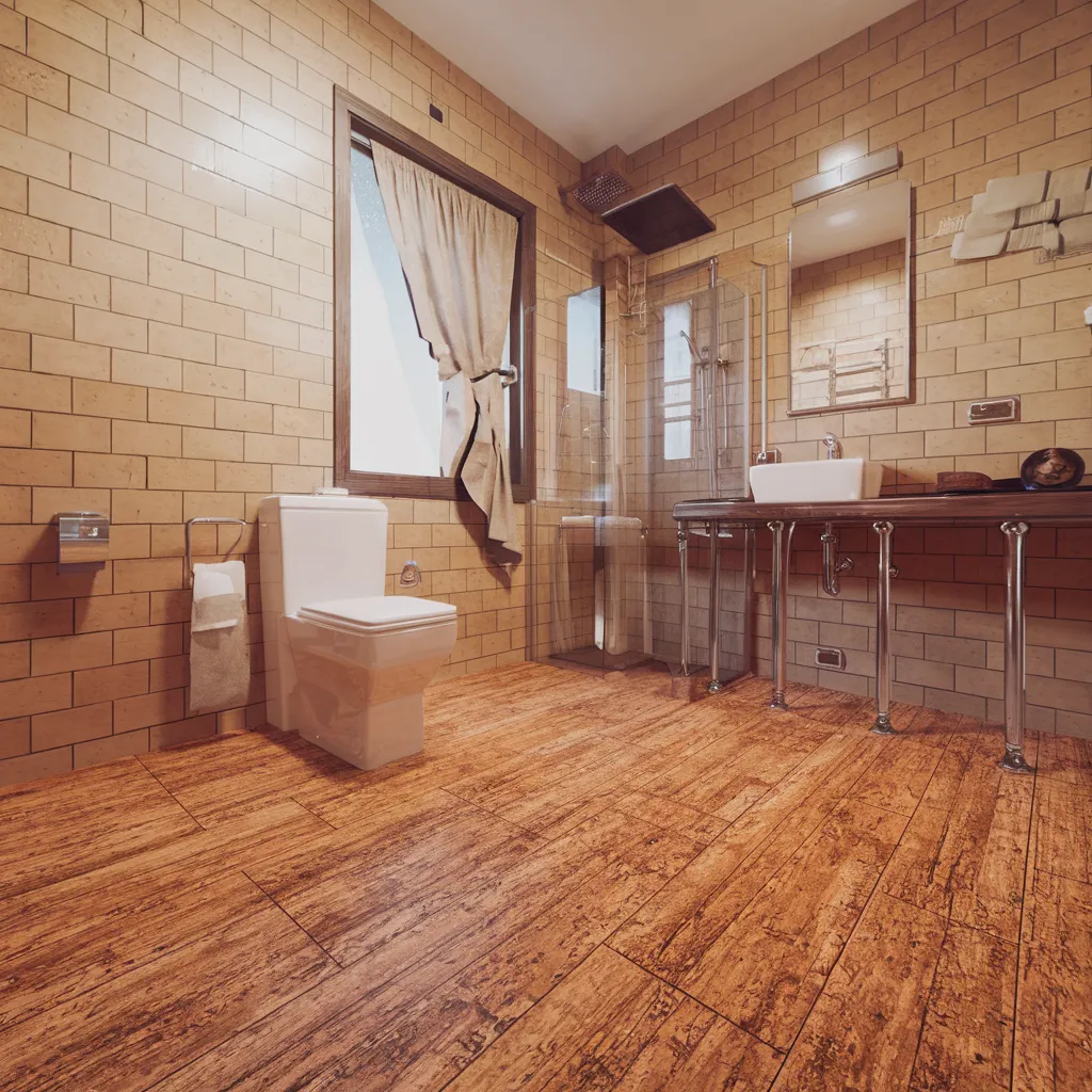 Reclaimed wood floors weave a tapestry of character and history into modern bathrooms. Crafted from wood that has graced previous constructions, each plank bears a unique patina and texture, lending an air of rustic charm. To ensure longevity, these floors are engineered to withstand the rigors of time, preventing splitting, shrinking, or twisting. Engineered reclaimed wood can even be laid over underfloor heating, seamlessly blending warmth and sustainability. With their storied past and enduring beauty, reclaimed wood floors invite a sense of timeless elegance into the sanctuary of the bath.